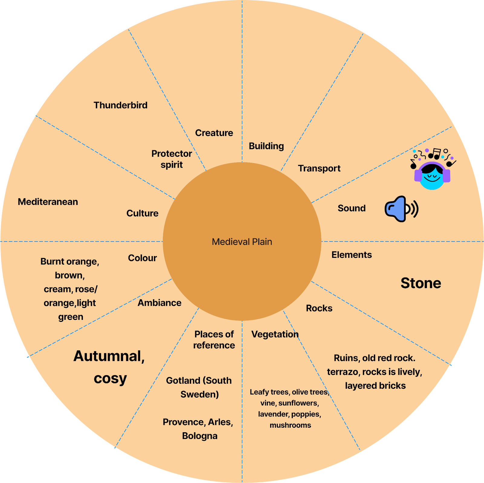 The creation of Medieval Plains shows how I approach worldbuilding: starting from an emotional core, layering cultural and visual references, and grounding the island in stories that connect to gameplay, NPCs, and environment design.