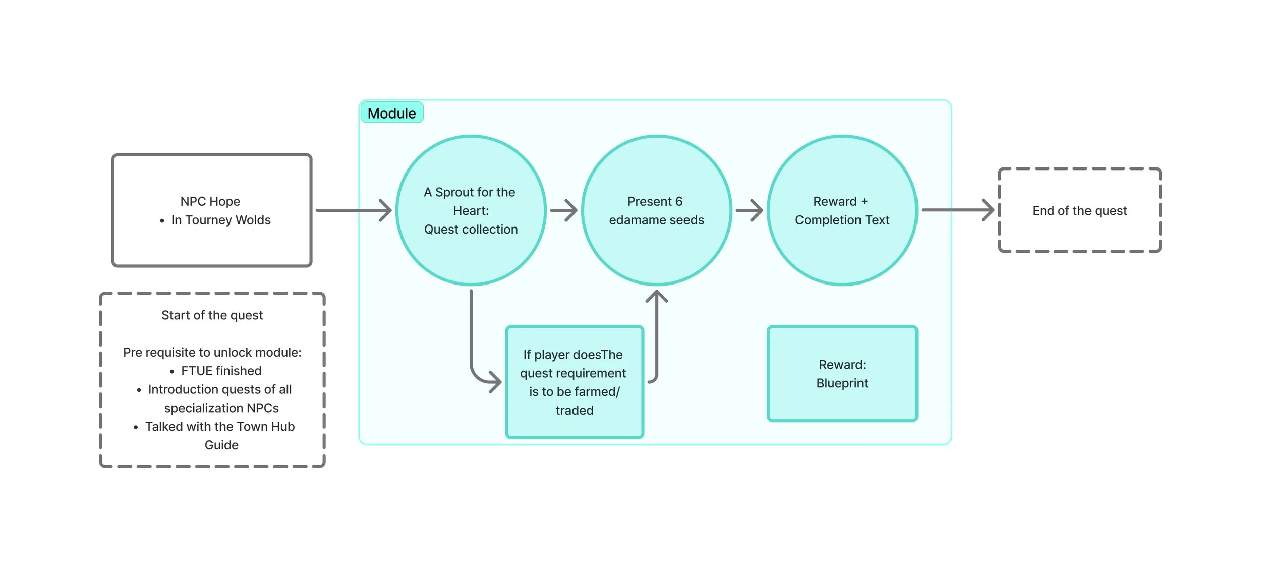 Gameplay Integration: The quest requires Edamame Seeds, an item already available to players, making the task both accessible and meaningful.